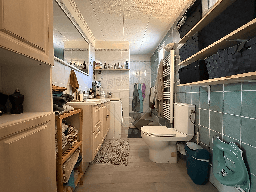 Au rez-de-chaussée, vous trouverez également une salle d’eau moderne avec WC.