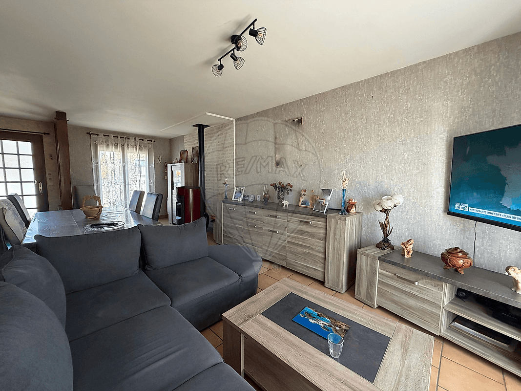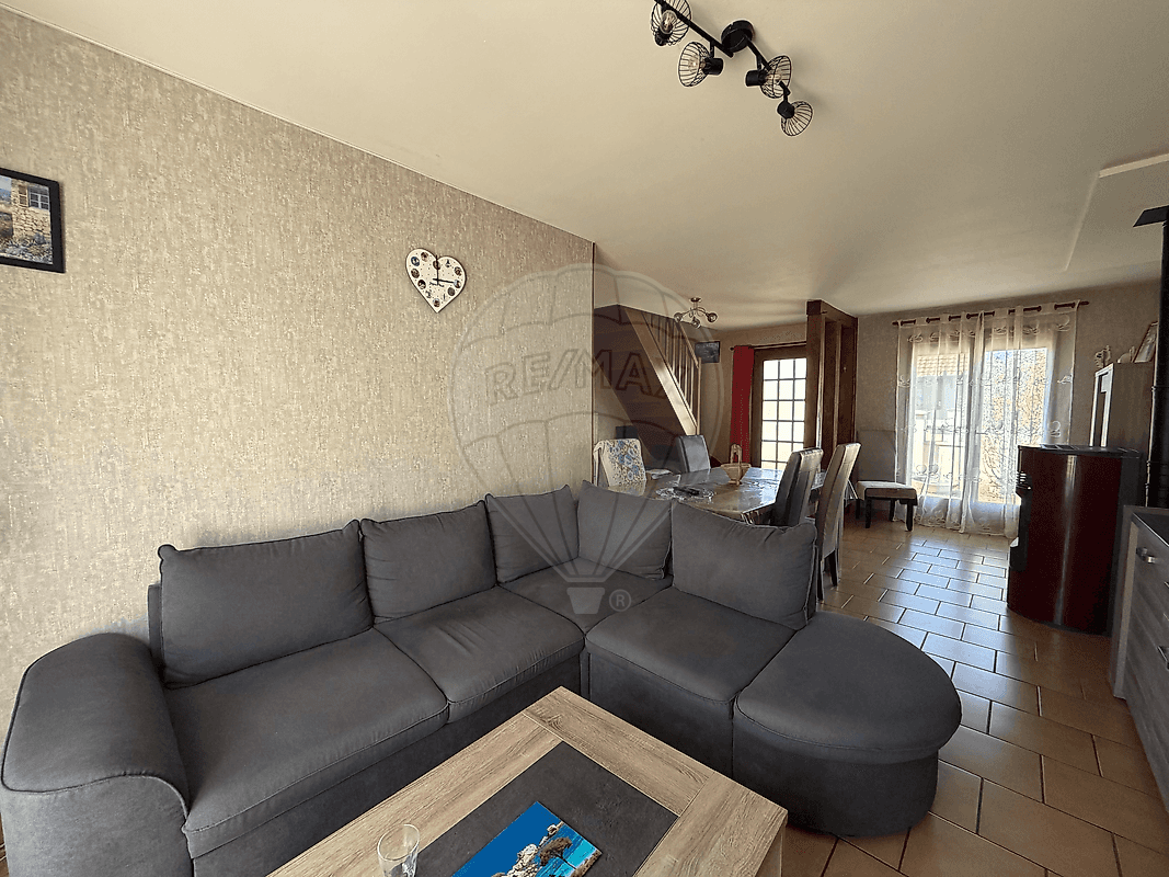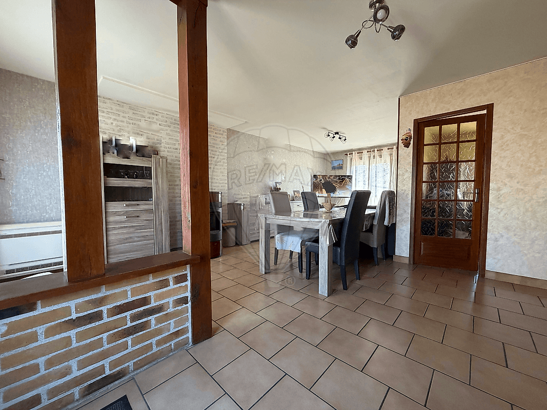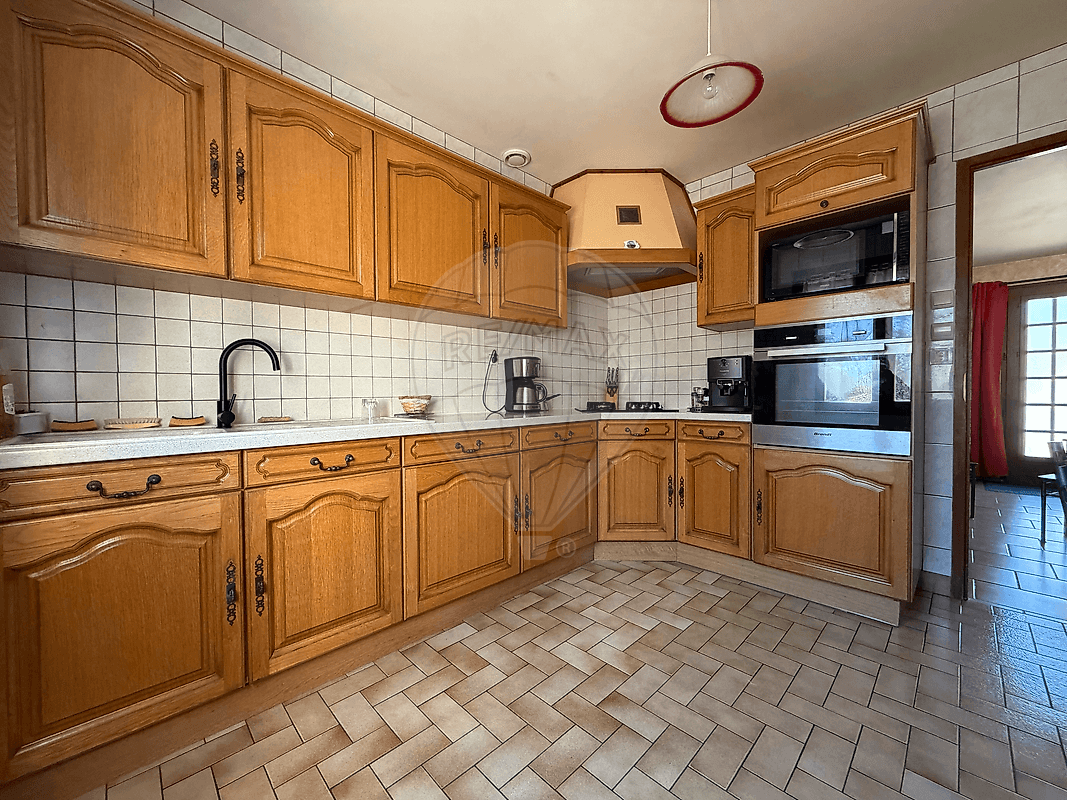 Vous trouverez également une cuisine équipée d’environ 10 m², ainsi qu’une chambre en rez-de-chaussée, une salle d’eau et un WC indépendant, permettant une vie de plain-pied confortable.